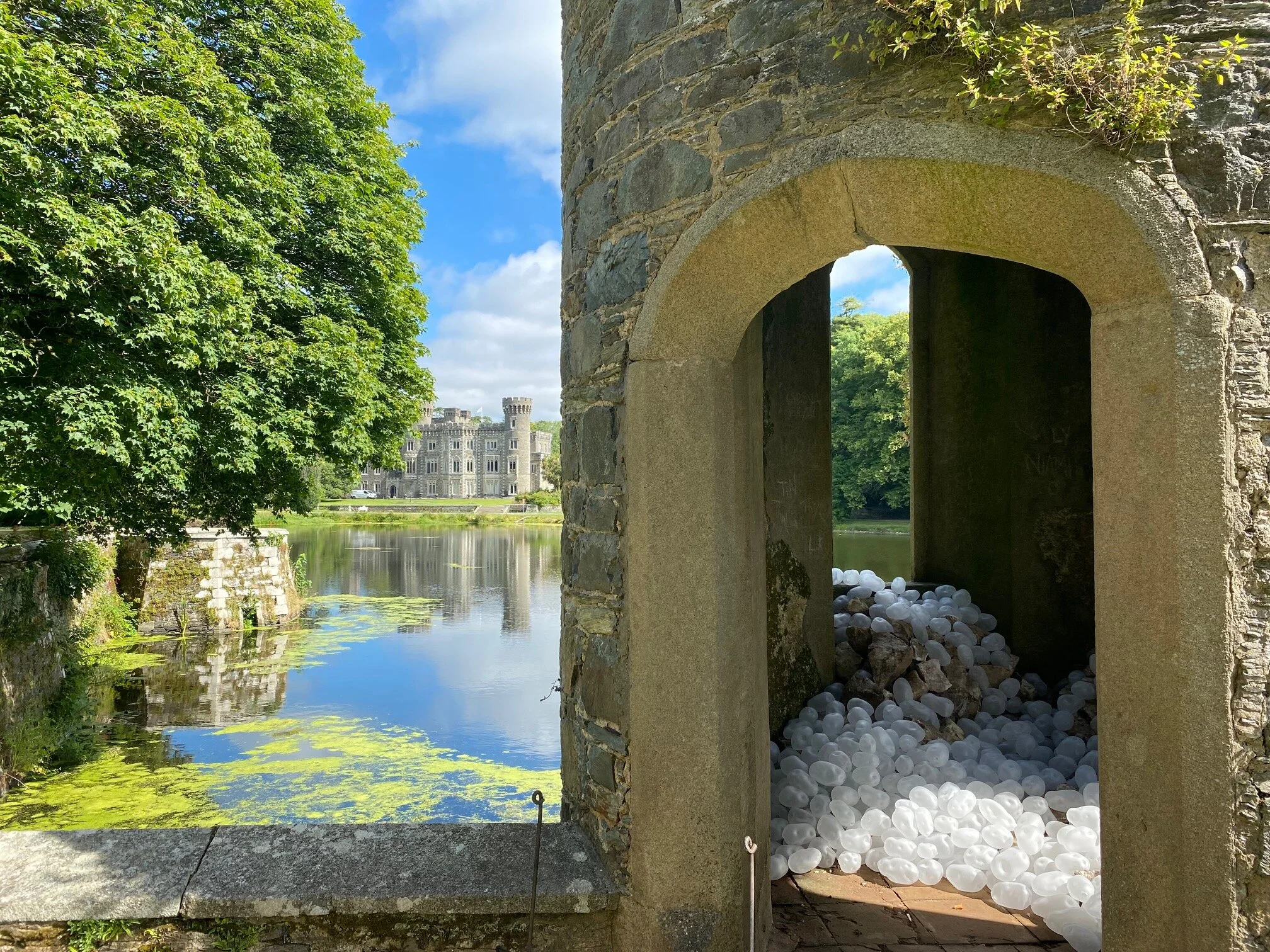 Stokes layers the glass potatoes over a cairn made from locally sourced Wexford white quartz. White quartz has powerful symbolic meaning, purifying negative energy. It is often used for headstones, but also was used extensively at Newgrange, the megalithic burial chamber and Unesco site in Stokes’ native county of Meath.